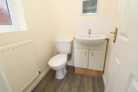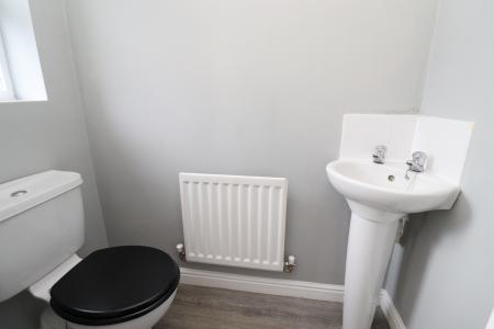 CLOAKROOM/WC With close coupled WC, pedestal wash hand basin, tiled splashbacks, laminate flooring, radiator and double glazed window to the front aspect.