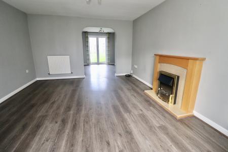 LOUNGE 14' 6" x 12' 5" (4.42m x 3.79m) With double glazed bay window to the front aspect, electric fire set with decorative fire surround, laminate flooring and two radiators.