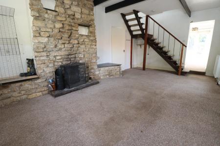 LOUNGE 20' 2" x 11' 9" (6.15m x 3.58m) With double glazed windows to the front and side aspects, beams to the ceiling, open fireplace with stone hearth and surround, radiator, stairs to the first floor landing and door to the dining room.