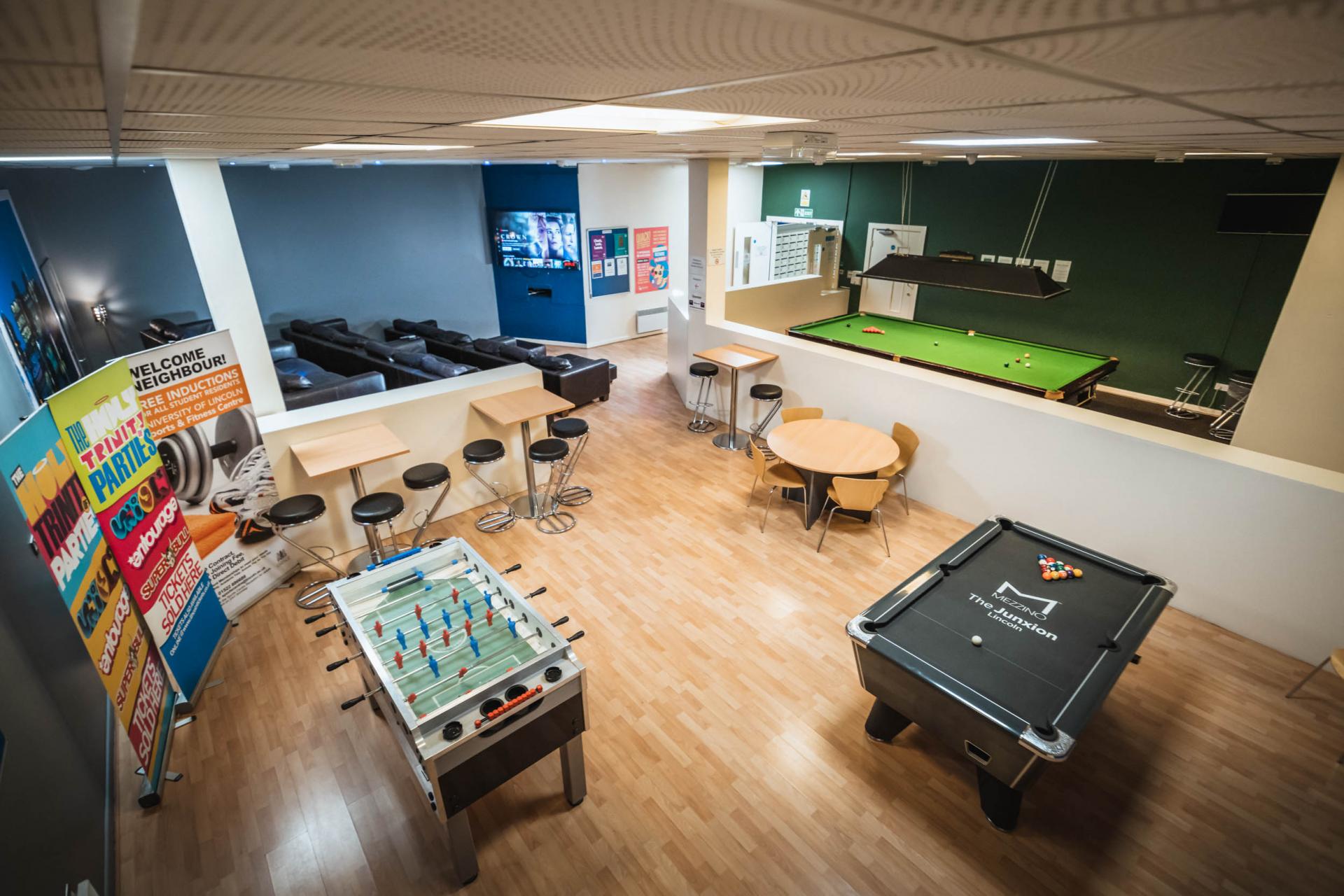 WHAT'S INCLUDED These rooms are part of a six bedroom apartment. Each room comes with a ¾ bed plus a large study desk and chair. The room has plenty of storage space including a wardrobe which has hanging space and shelving, a bedside table and a bookshelf. The kitchen comes with a dishwasher, cooker, microwave, two fridge freezers, leather sofas, TV, coffee table, breakfast bar with stools and plenty of cupboard space. It is a great space to hang out with friends and flatmates. Students also have access to a fantastic social space which has a pool table, snooker table and comfy seating where you can watch a movie or the latest Premier League or Champions League match on a 75" TV.