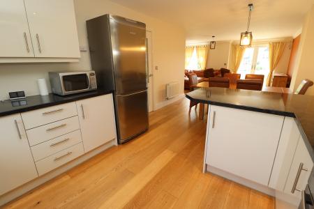 KITCHEN/DINER 16' 6" x 10' 5" (5.05m x 3.18m) Fitted with a range of wall and base units with work surfaces over, electric oven with 5 ring gas hob and extractor fan, integrated washing machine and dishwasher, space for fridge freezer, stainless steel 1.5 bowl sink with side drainer and mixer tap over, wall mounted gas fired central heating boiler, spotlights, laminate flooring, two radiators and double glazed window to the front aspect.