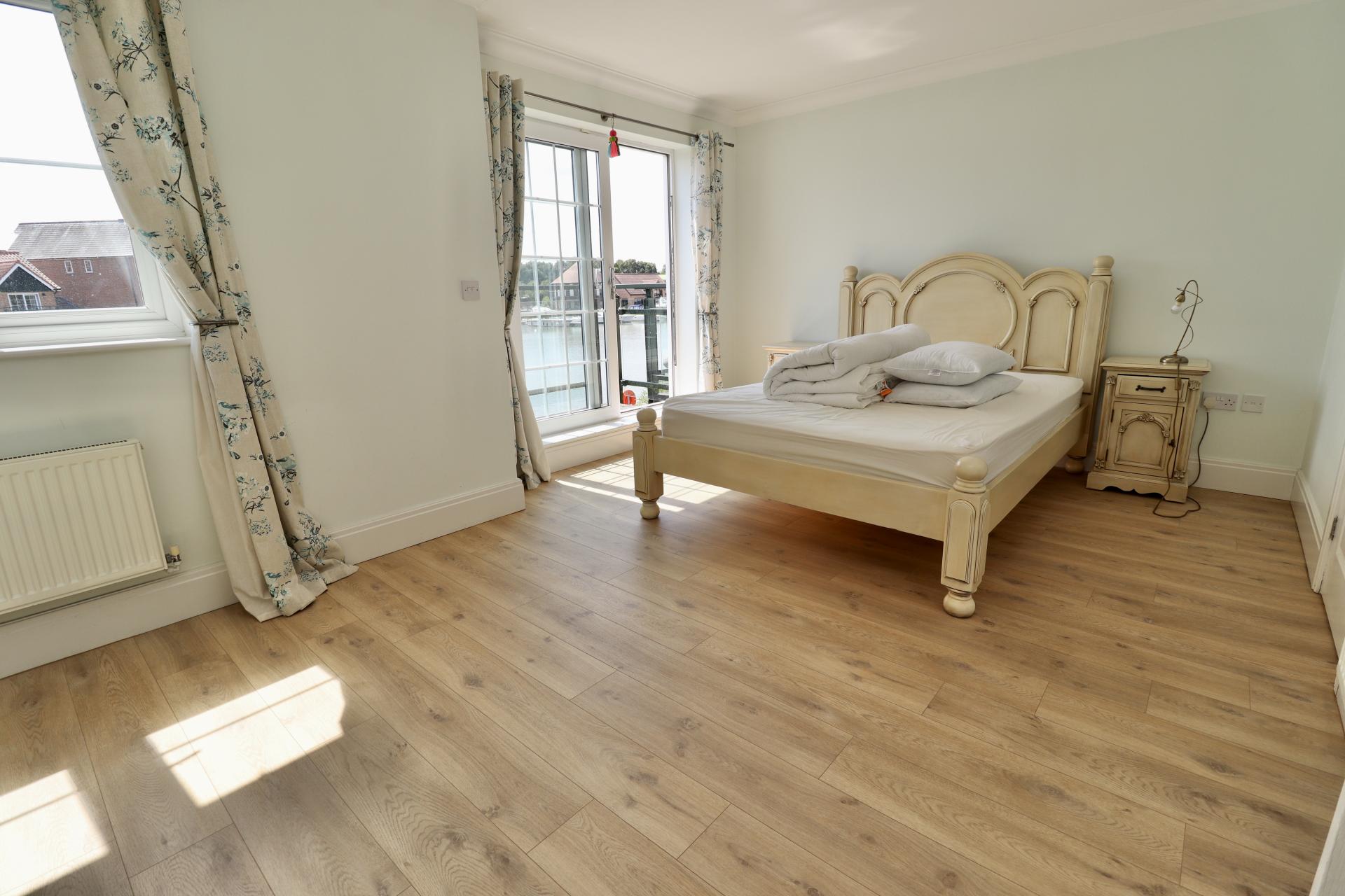 BEDROOM 1 11' 8" x 17' 8" (3.58m x 5.39m) With double glazed sliding door giving access to the balcony and stunning views of the marina, double glazed window to the rear aspect, fitted wardrobes with sliding doors, laminate flooring and radiator.