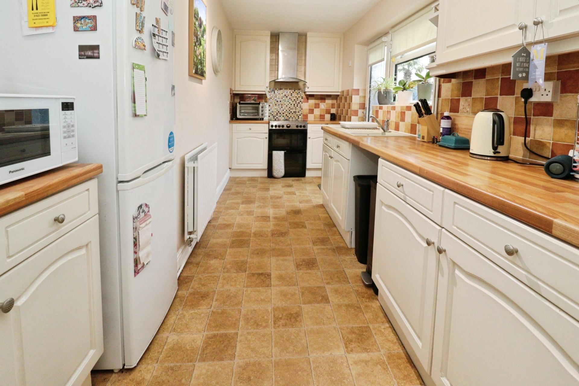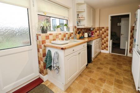 KITCHEN 16' 0" x 8' 4" (4.88m x 2.55m) Fitted with a range of wall and base units with work surfaces over, 1 1/2 bowl sink with side drainer and mixer tap over, spaces for cooker and fridge freezer, tiled splashbacks, radiator, double glazed window to the rear aspect and door to the rear garden.