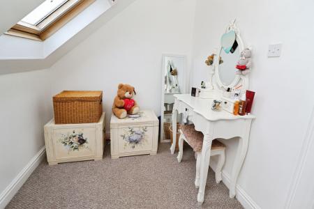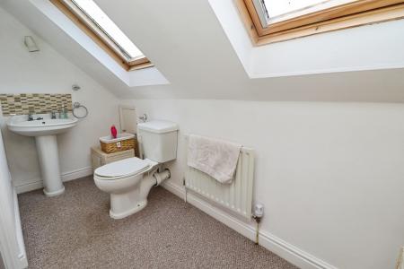 EN-SUITE WC / DRESSING ROOM With close coupled WC, pedestal wash hand basin, two Velux windows and radiator.