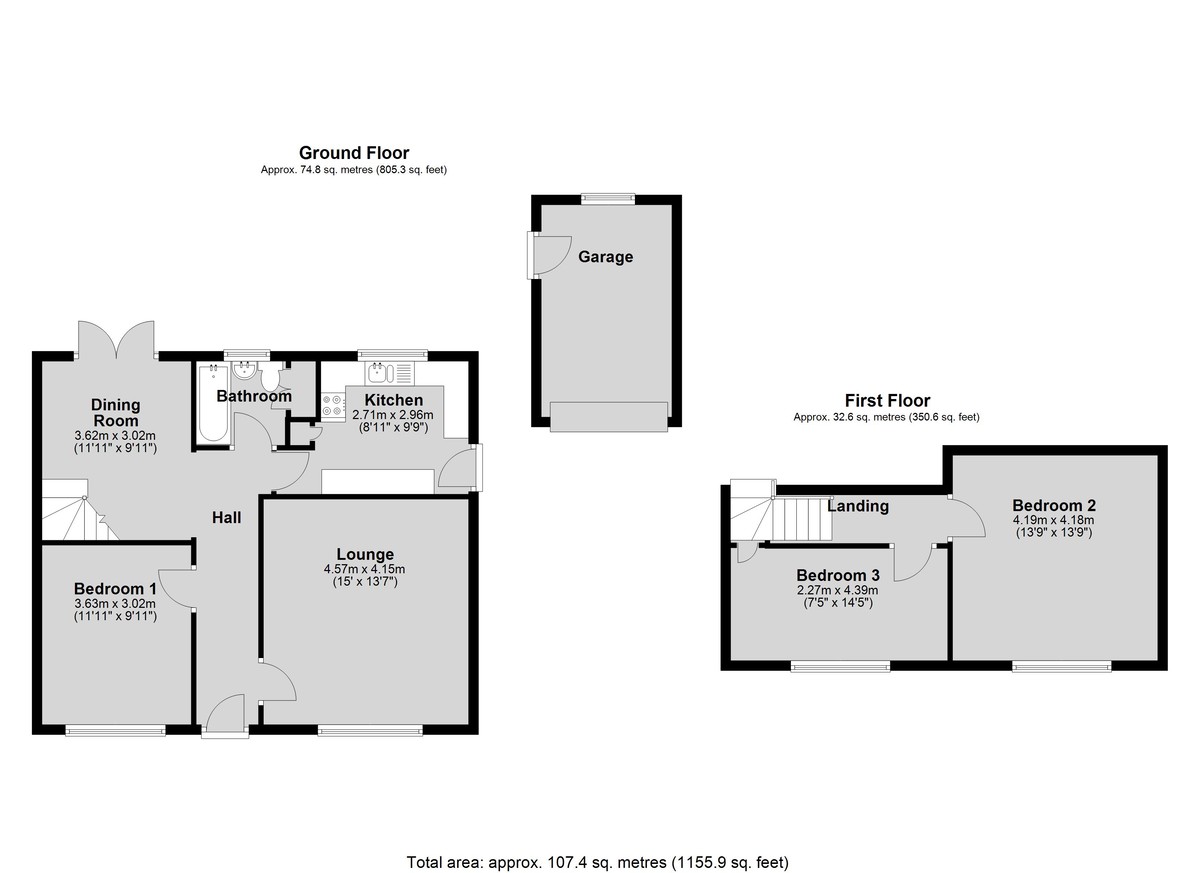 LOUNGE 14' 11" x 13' 7" (4.57m x 4.15m) With double glazed window to the front aspect, gas fire set within a feature fireplace, laminate flooring and radiator.