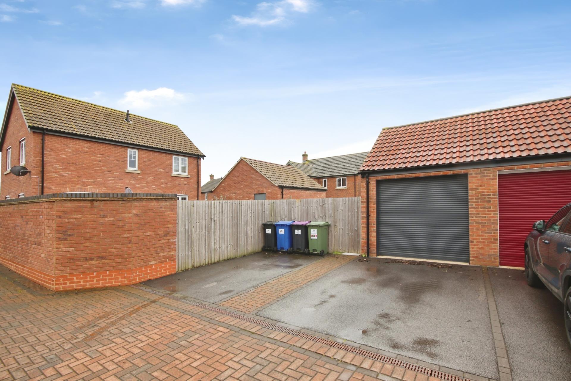 - Detached garage with electric roller door and storage