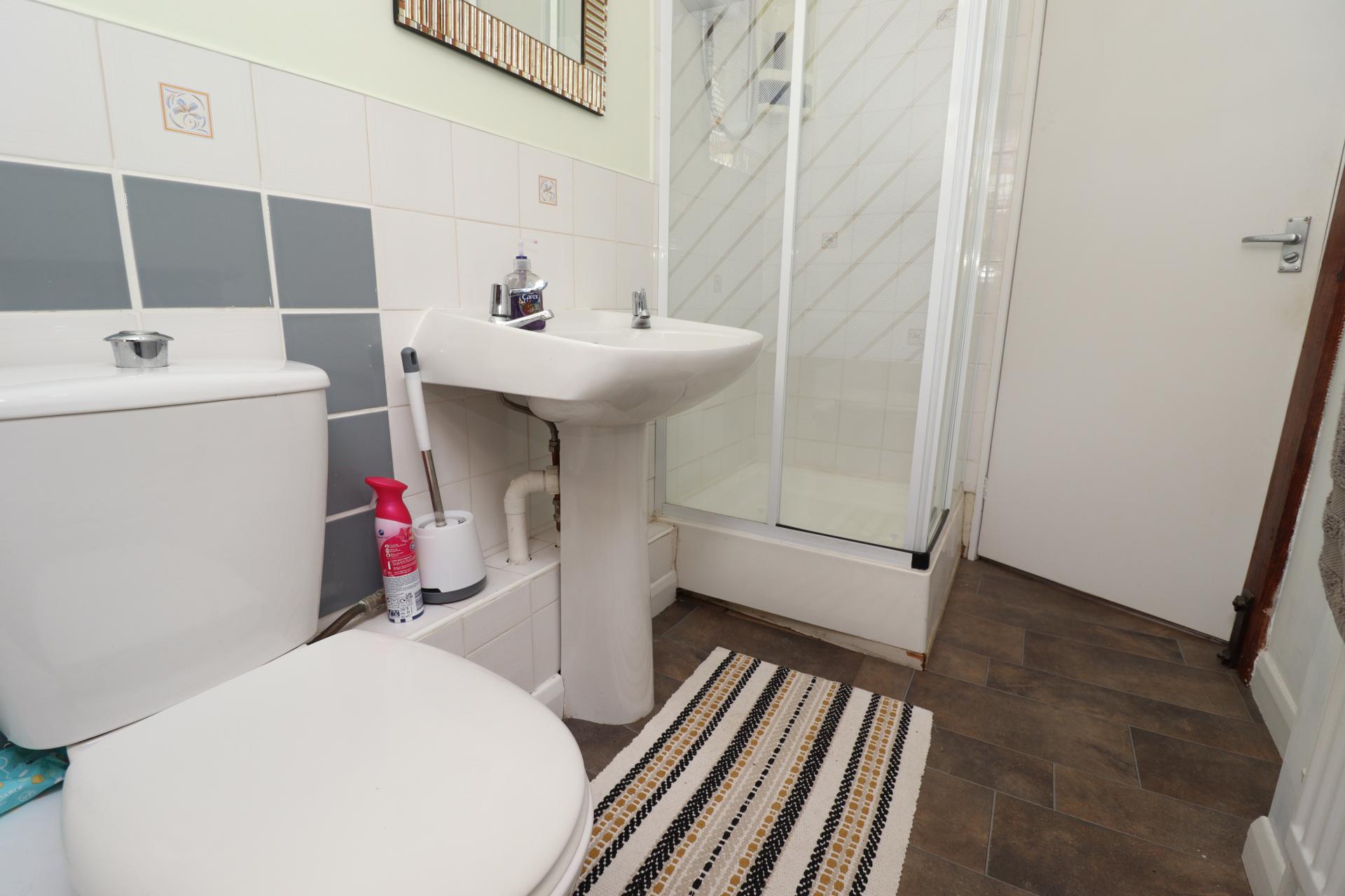 EN-SUITE SHOWER ROOM Fitted with a three piece suite comprising of newly fitted shower cubicle with rain shower, pedestal wash hand basin and close coupled WC, laminate flooring and radiator.