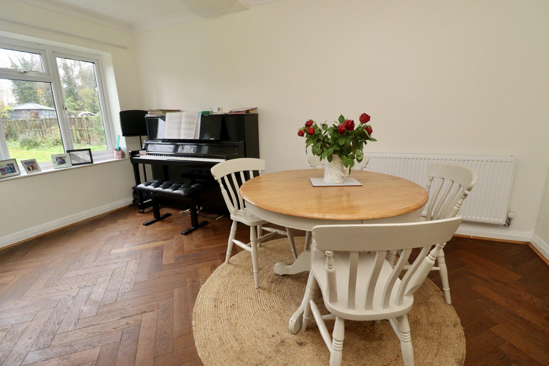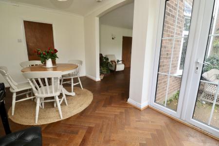 DINING ROOM 14' 11" x 8' 10" (4.57m x 2.71m) With double glazed window to the rear aspect, double glazed French doors to the rear garden, parquet flooring and radiator.