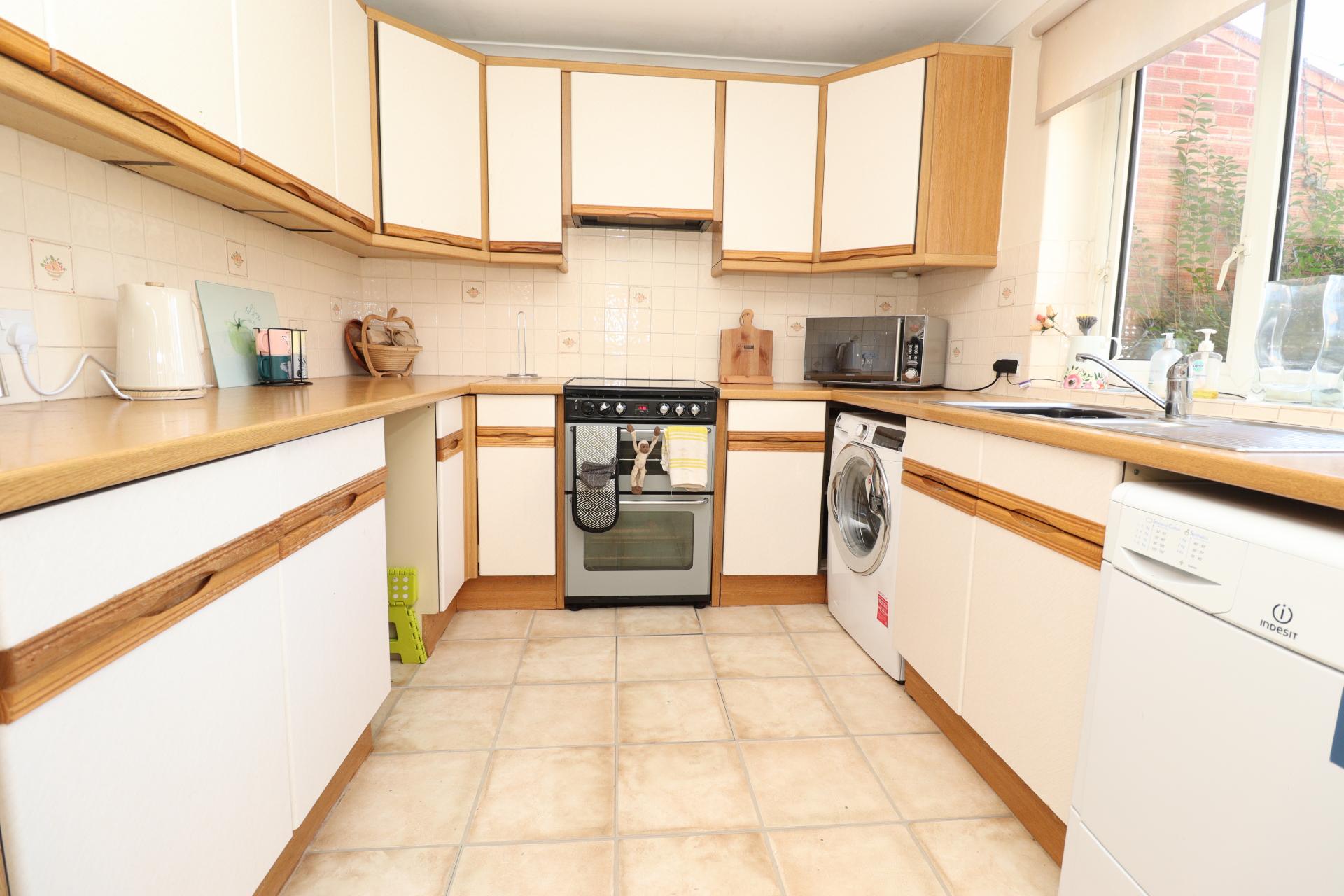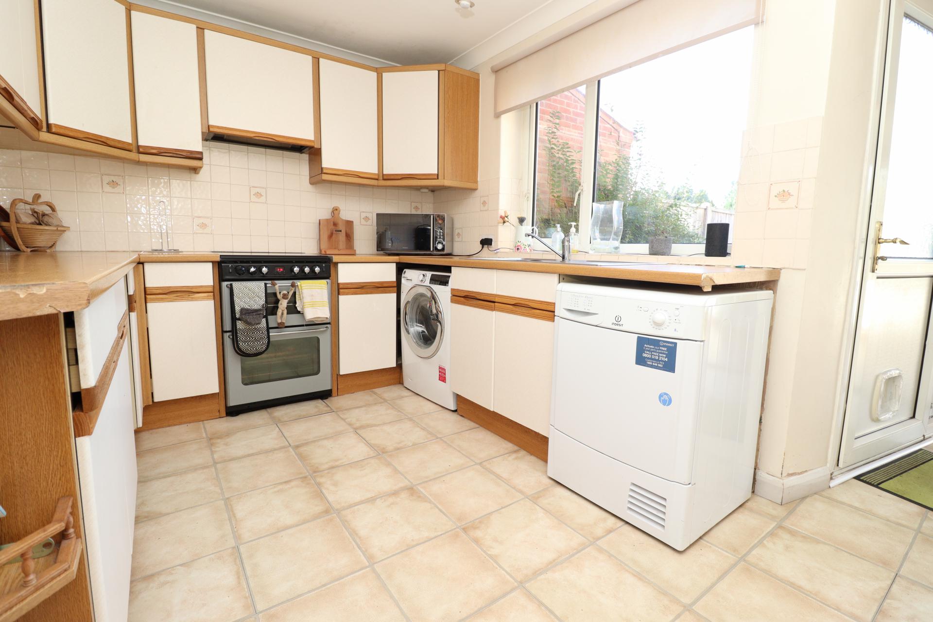 KITCHEN 8' 10" x 8' 7" (2.70m x 2.63m) Fitted with a range of wall and base units with work surfaces over, stainless steel 1 1/2 bowl sink with side drainer and mixer tap over, spaces for cooker, washing machine and dishwasher, tiled splashbacks and flooring and double glazed window to the rear aspect.