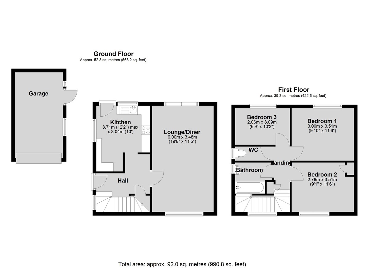 LOUNGE/DINER 19' 8" x 11' 5" (6.00m x 3.48m) With double glazed window to the front aspect, double glazed patio doors to the rear garden, decorative fireplace and radiator.
