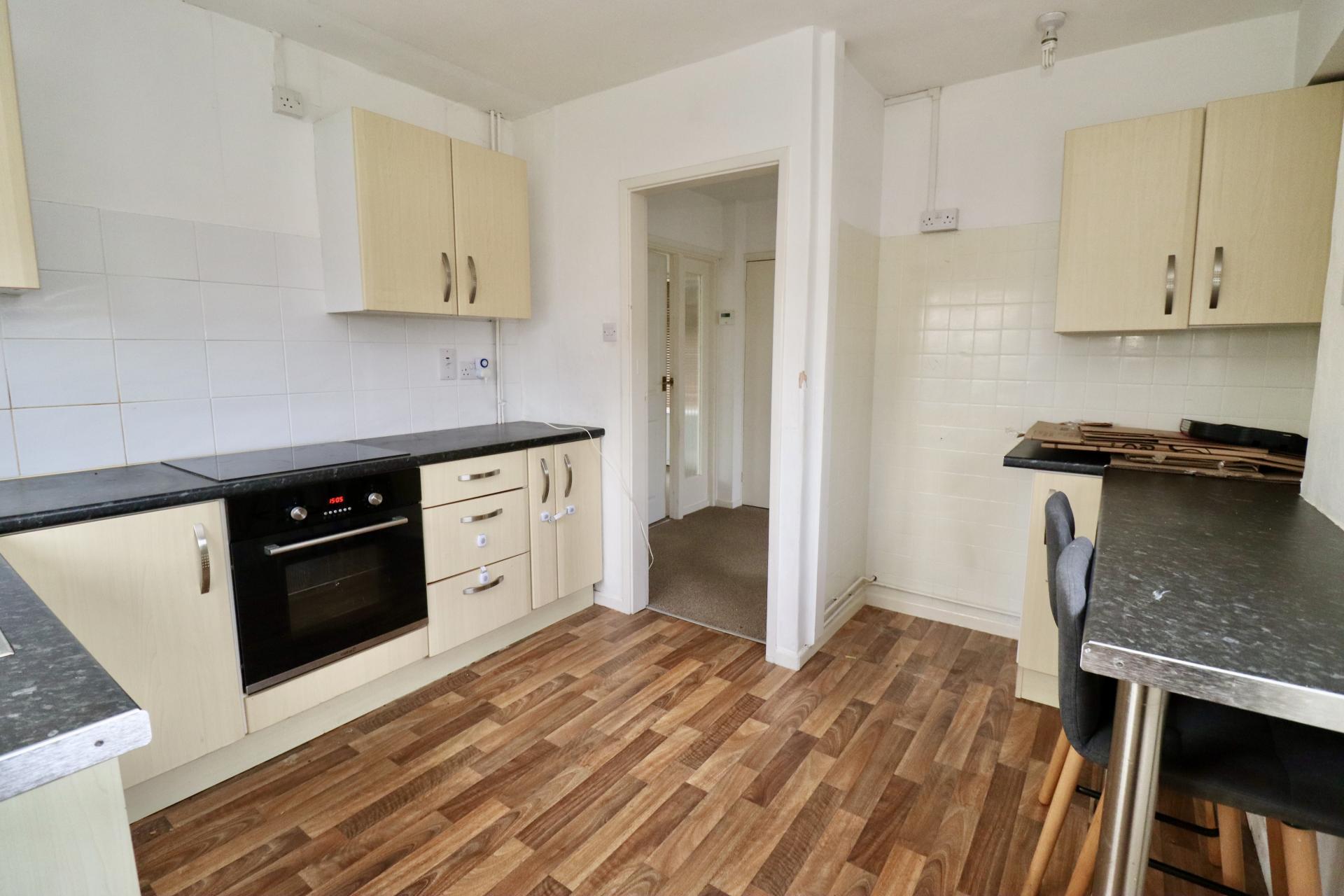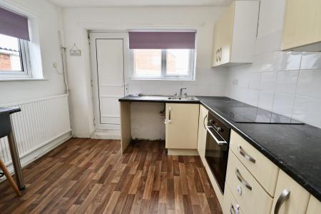 KITCHEN 12' 2" x 9' 11" (3.71m x 3.04m) Fitted with a range of wall and base units with work surfaces over, stainless steel bowl sink with side drainer and mixer tap, electric oven and hob with extractor fan over, spaces for washing machine and fridge freezer, breakfast bar, tiled splashbacks, radiator, double glazed windows to the side and rear aspect and door to the rear garden.