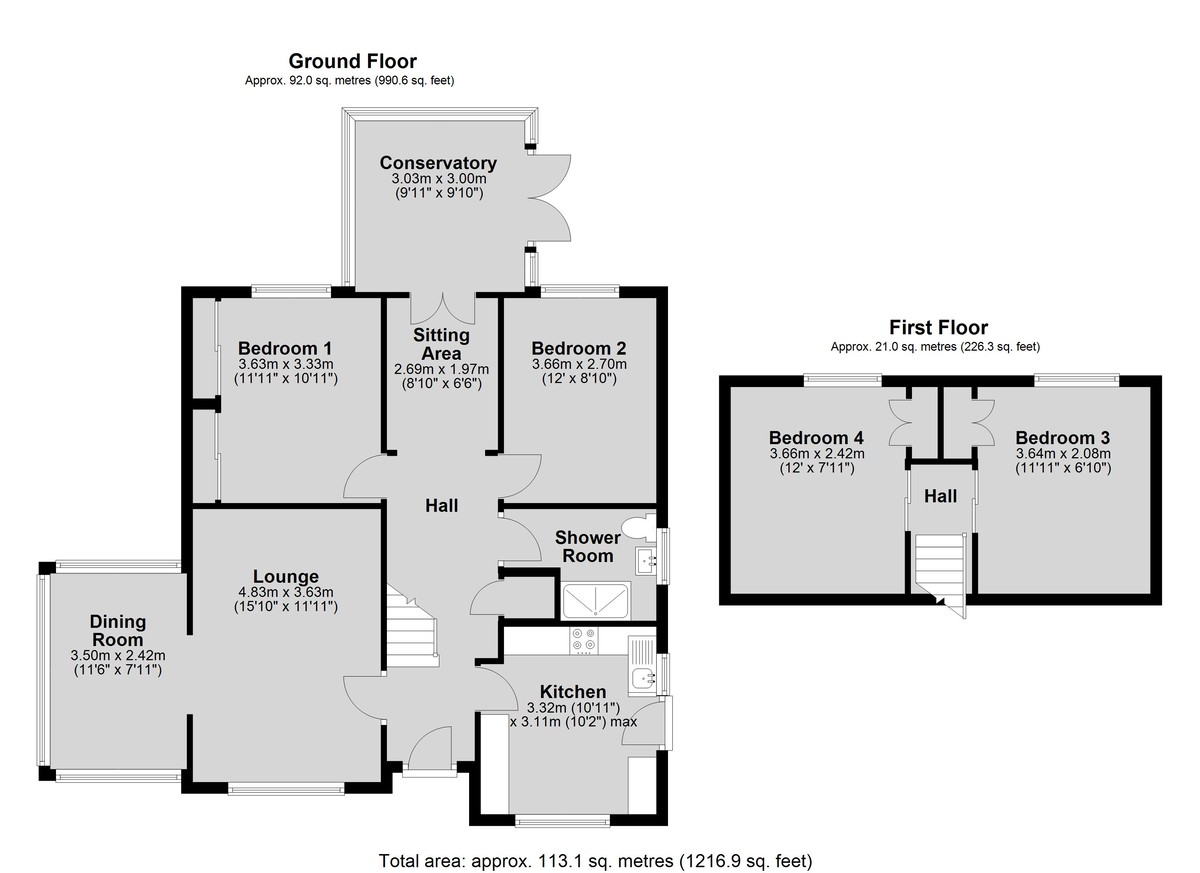 - Lounge, dining room, sitting area and conservatory