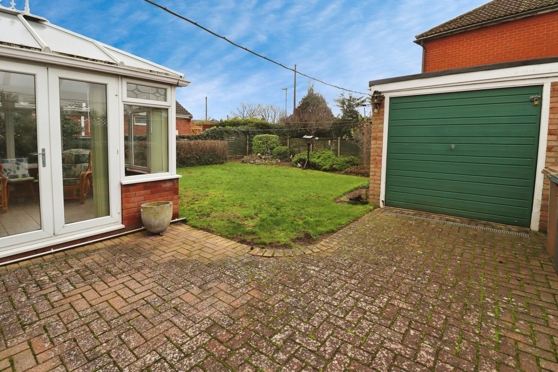 - block-paved driveway, detached single garage and private rear garden