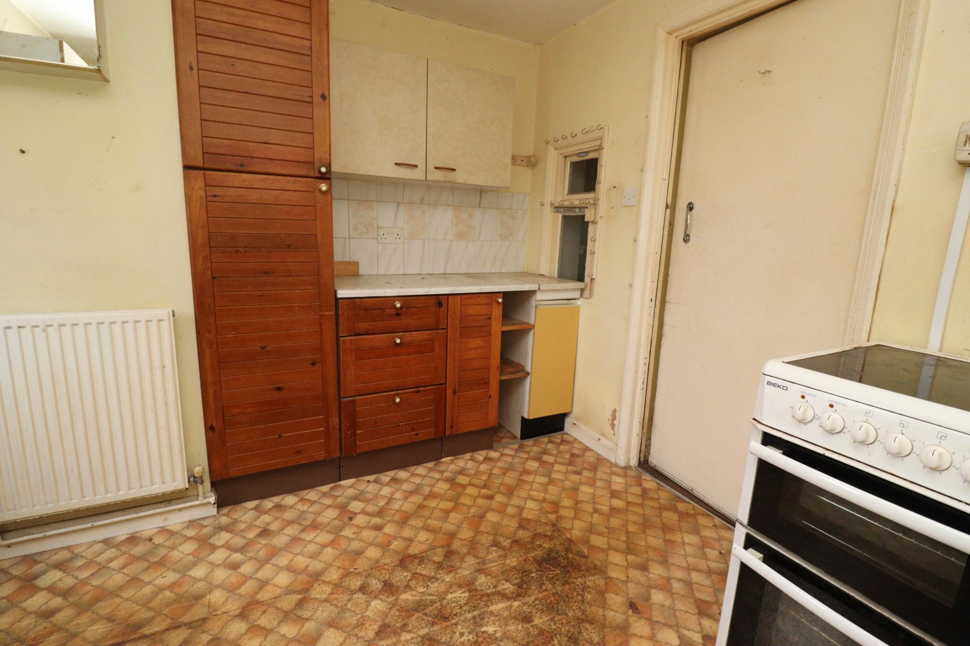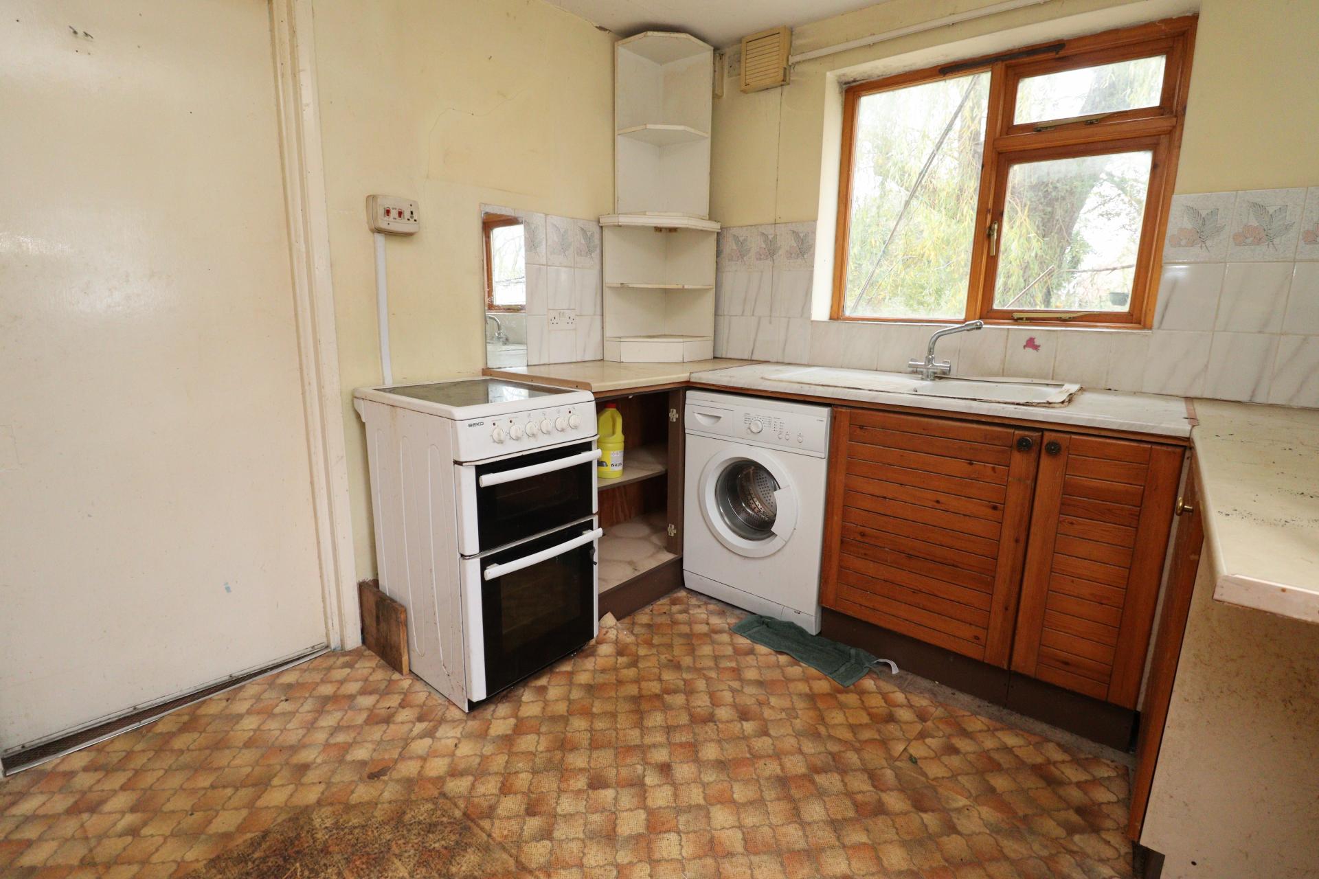 KITCHEN 11' 7" x 8' 9" (3.55m x 2.68m) Fitted with a range of wall and base units with work surfaces over, sink with side drainer and mixer tap over, spaces for cooker, washing machine and fridge, tiled splashbacks, double glazed window to the side aspect and radiator.