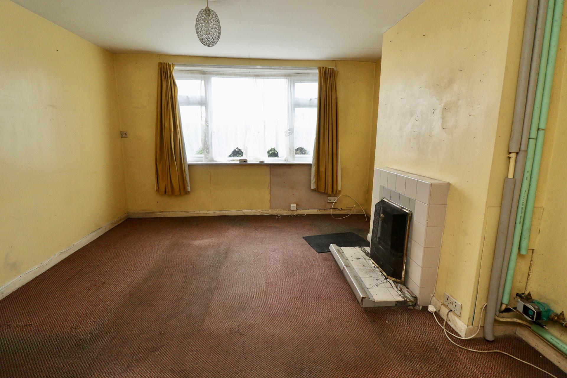 LOUNGE 11' 10" x 11' 10" (3.63m x 3.62m) With double glazed window to the front aspect, staircase to the first floor and open fireplace.