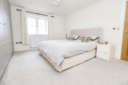BEDROOM 1 14' 4" x 12' 6" (4.39m x 3.83m) With a range of fitted wardrobes, double glazed window to the rear aspect with open field views and a radiator.