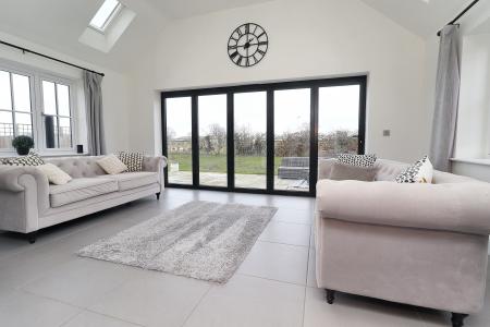 GARDEN ROOM 11' 9" x 17' 3" (3.60m x 5.27m) With double glazed windows to the front and rear aspects, double glaze Bifold doors onto the garden, vaulted ceiling with four Velux windows, tiled flooring with underfloor heating and spotlights.