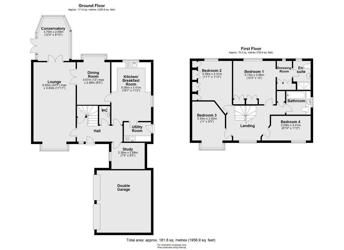 - Lounge, Dining Room, Study & Conservatory