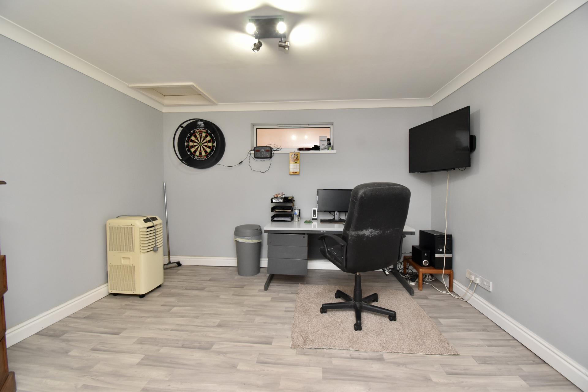 OUTSIDE To the rear of the property there is extensive off road area for many vehicles, larger than average lawned areas and access to the Detached Double Garage/Workshop. To the front of the property there is are decorative gravelled beds, brick walling and path to the front door. To the side of the property there is a gated driveway providing access to the rear.