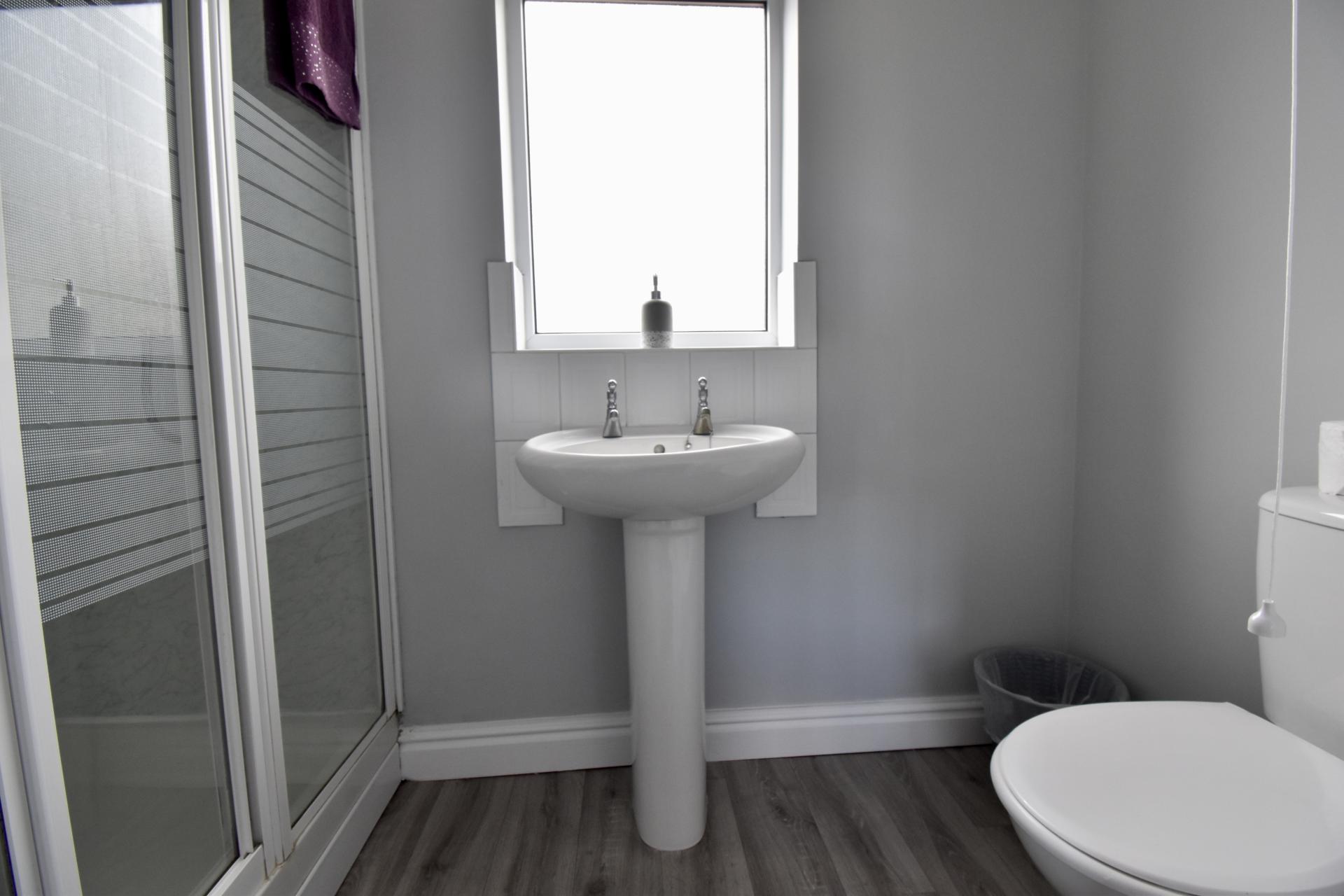 With window to the side aspect, suite to comprise of shower, WC and wash hand basin and towel radiator.