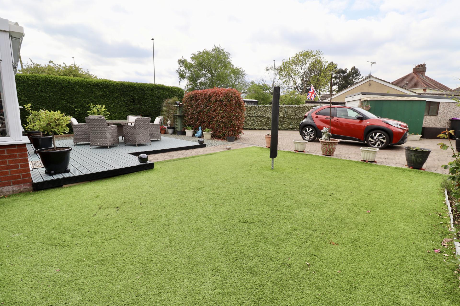 OUTSIDE The property sits on a pleasant corner plot with an enclosed gravelled garden to the front with gate and path to the front door. To the rear of the property there is a secure gated block paved driveway, accessed off Queensway, providing off street parking for multiple vehicles and access to the single garage. The garage has an up and over door to the front with light and power. There is a rear low maintenance garden laid to artificial grass with a decked seating area and borders with mature shrubs.