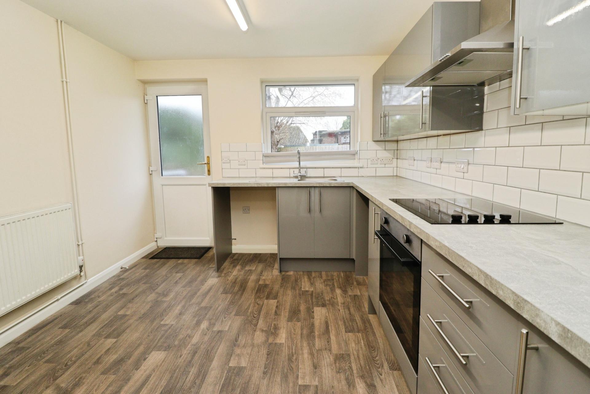 KITCHEN 10' 5" x 9' 10" (3.20m x 3.00m) Fitted with a modern range wall and base with work surfaces over, stainless steel sink with side drainer and mixer tap over, electric oven and hob with extractor fan, spaces for washing machine and fridge, tiled splashbacks, wall mounted gas fired central heating boiler, radiator, double glazed window to the rear aspect and door to the garden.
