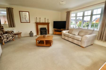 LOUNGE/DINER 22' 0" x 16' 11" (6.72m x 5.17m) With gas fire set within a feature fireplace, double glazed bay window to the front aspect, two double glazed windows to the side aspects and two radiators.