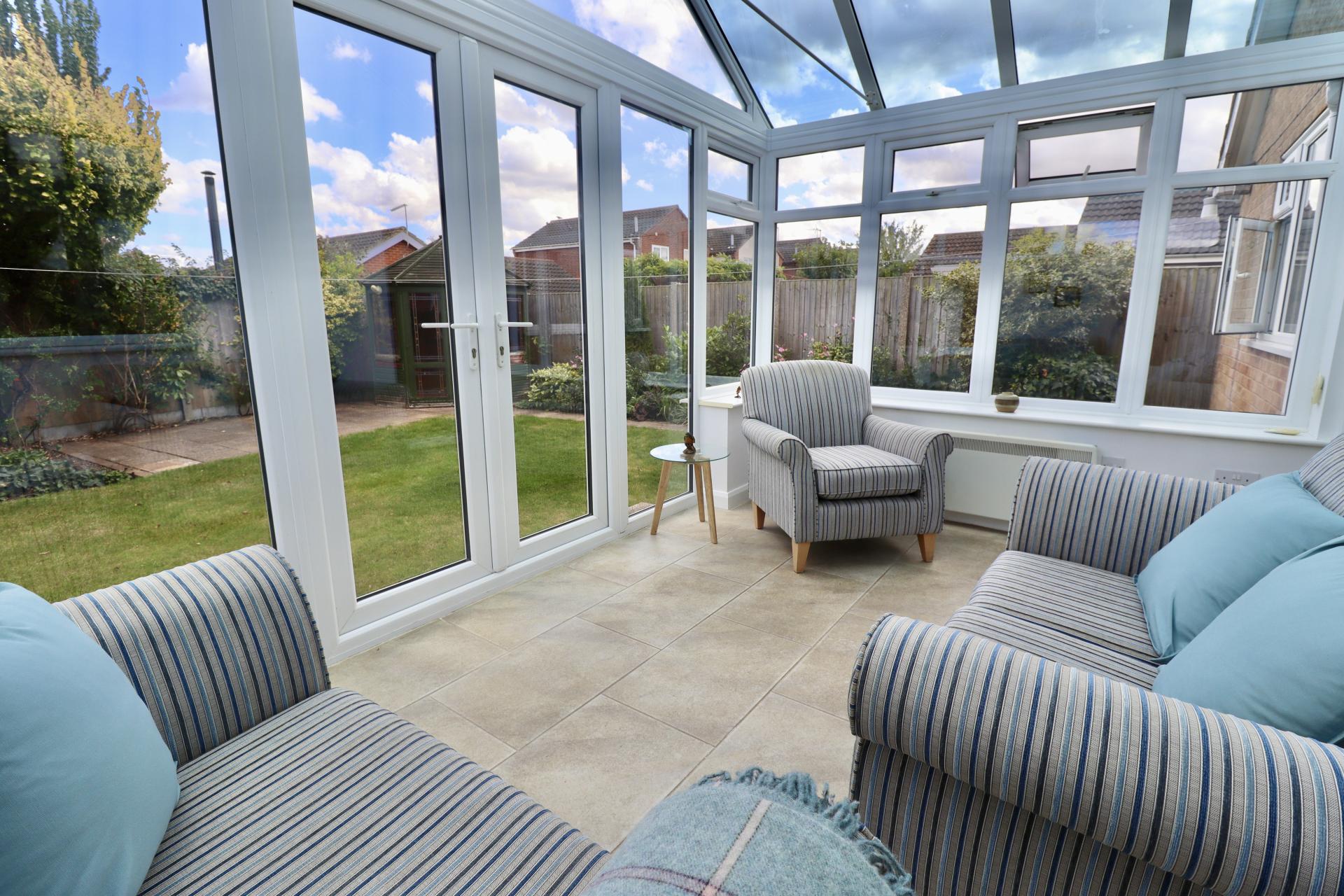 CONSERVATORY 13' 6" x 8' 7" (4.13m x 2.64m) With double glazed French doors to the rear aspect, electric radiator and ceiling fan.
