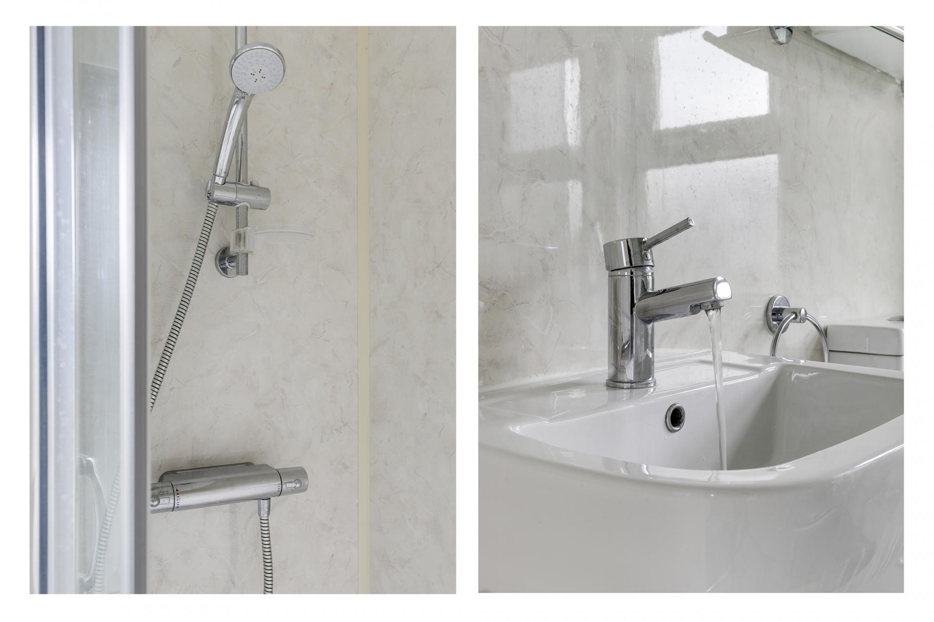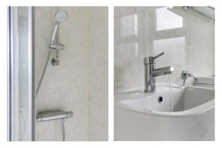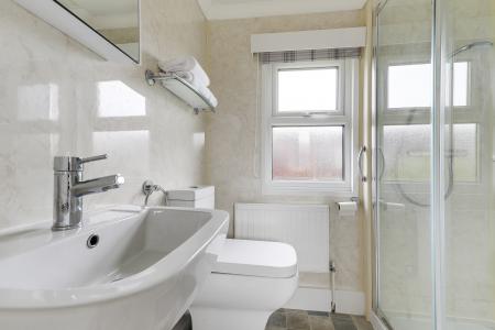 WET ROOM 5' 8" x 5' 4" (1.75m x 1.65m) Fitted with wet room shower, close coupled WC and pedestal wash hand basin, double glazed window and radiator.