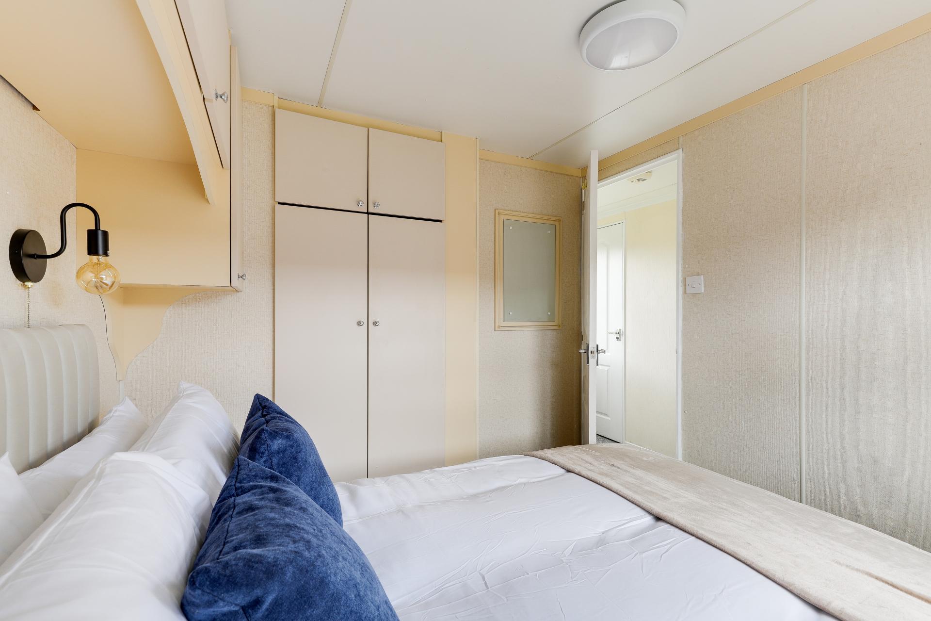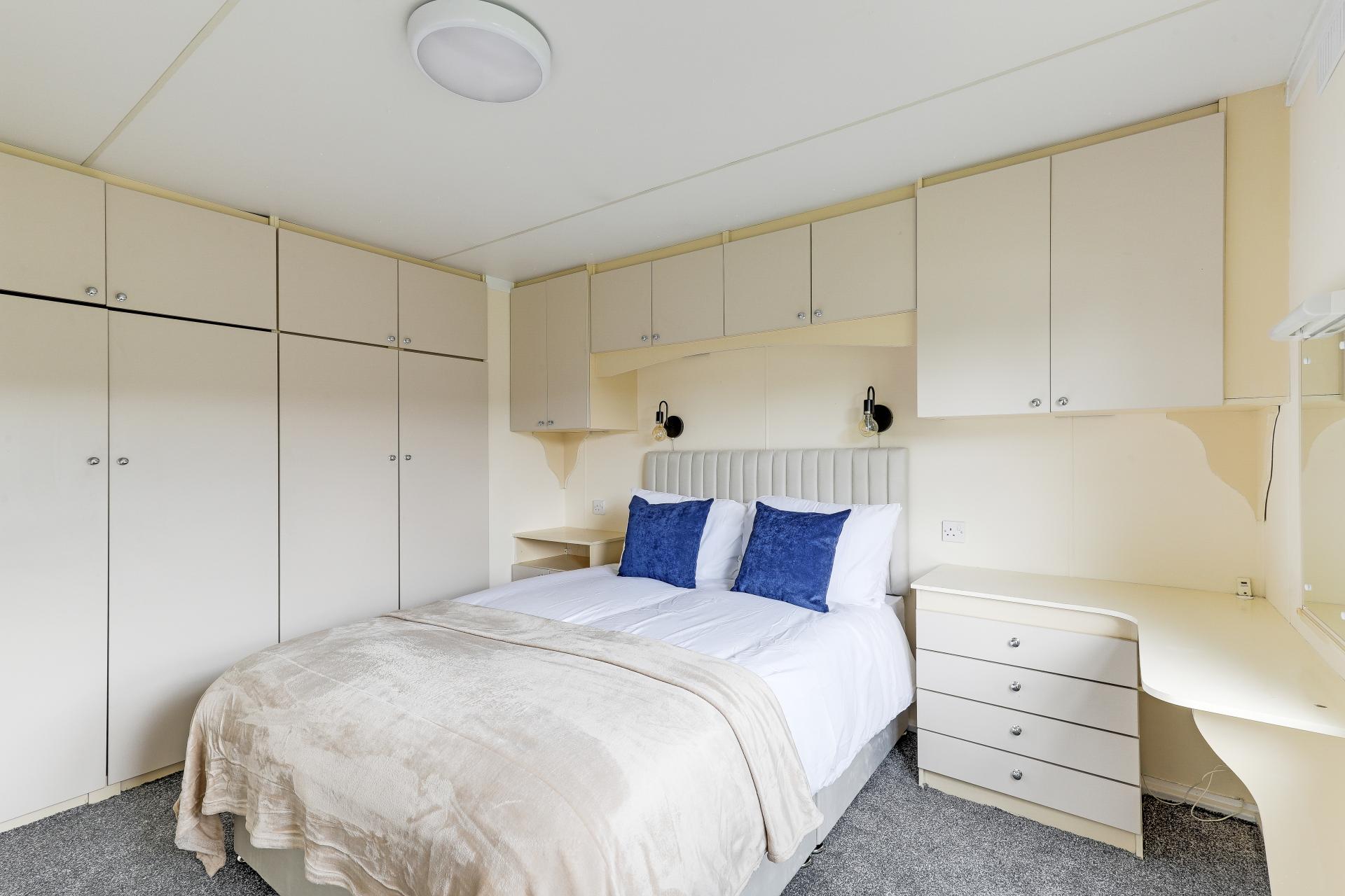 BEDROOM 2 7' 6" x 7' 4" (2.31m x 2.26m) With double glazed window to the side aspect, double wardrobe, overbed storage, bedside tables and radiator.