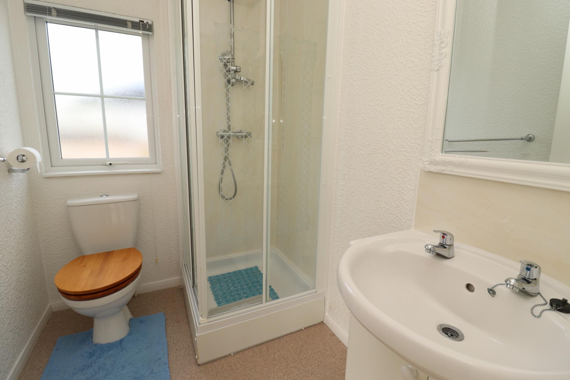 EN-SUITE SHOWER ROOM Fitted with a three-piece suite comprising of shower cubicle, wash hand basin in a vanity style unit with storage beneath and close coupled WC, radiator and double glazed window to the side aspect.