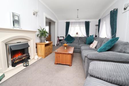 LOUNGE 19' 2" x 11' 1" (5.85m x 3.40m) With three double glazed bay windows to the front and side aspects, electric fire set within decorative fireplace and two radiators.