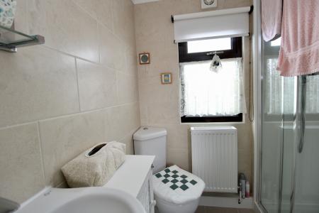 SHOWER ROOM 5' 10" x 5' 3" (1.80m x 1.62m) With uPVC window to the side aspect, suite to comprise of shower, WC and wash hand basin, tiled floor, tiled walls and radiator.