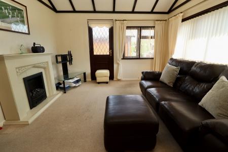 LOUNGE 13' 10" x 11' 11" (4.22m x 3.65m) With double glazed bay window to the front aspect, double glazed window to the side aspect, electric fire set within a decorative fireplace and radiator.