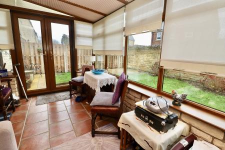 SUN ROOM 13' 3" x 8' 7" (4.05m x 2.62m) With double glazed French doors to the rear garden, wall lights and tiled flooring.