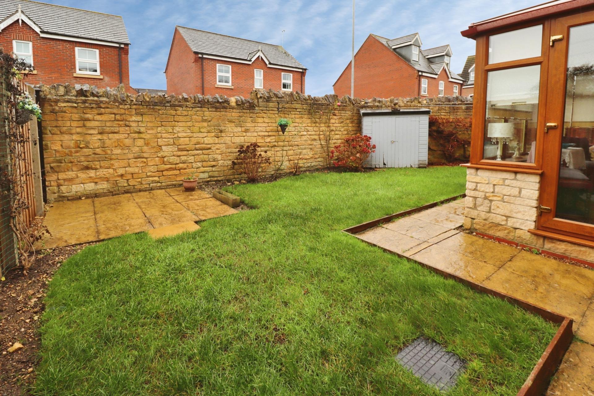 OUTSIDE To the front of the property there are two allocated parking spaces and a lawned garden with decorative shrubs and flowerbeds. To the side of the property there is a path, flowerbeds and garden shed. The rear garden is mainly laid to lawn with a patio seating area and mature shrubs.