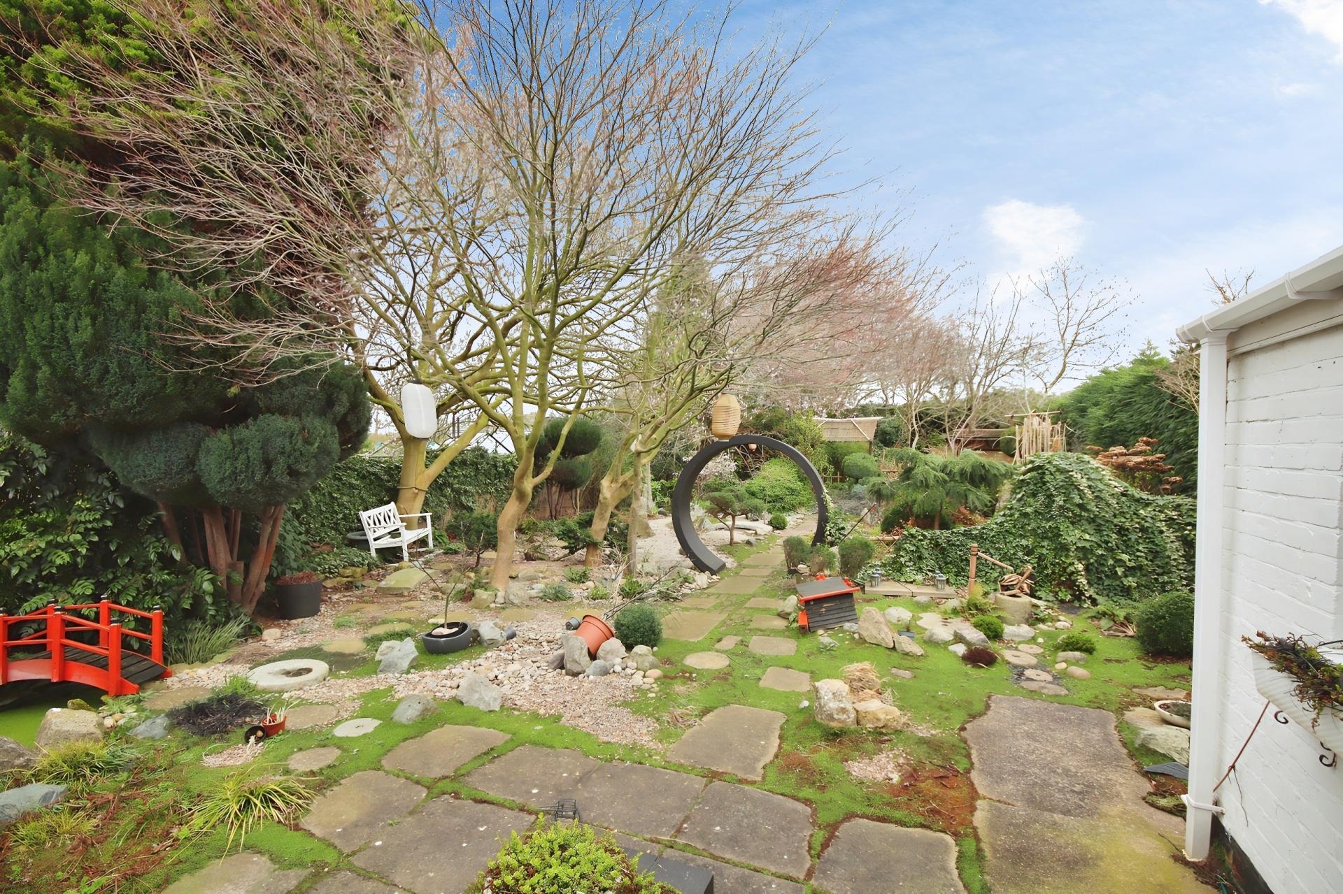 - Large rear garden with multiple seating areas