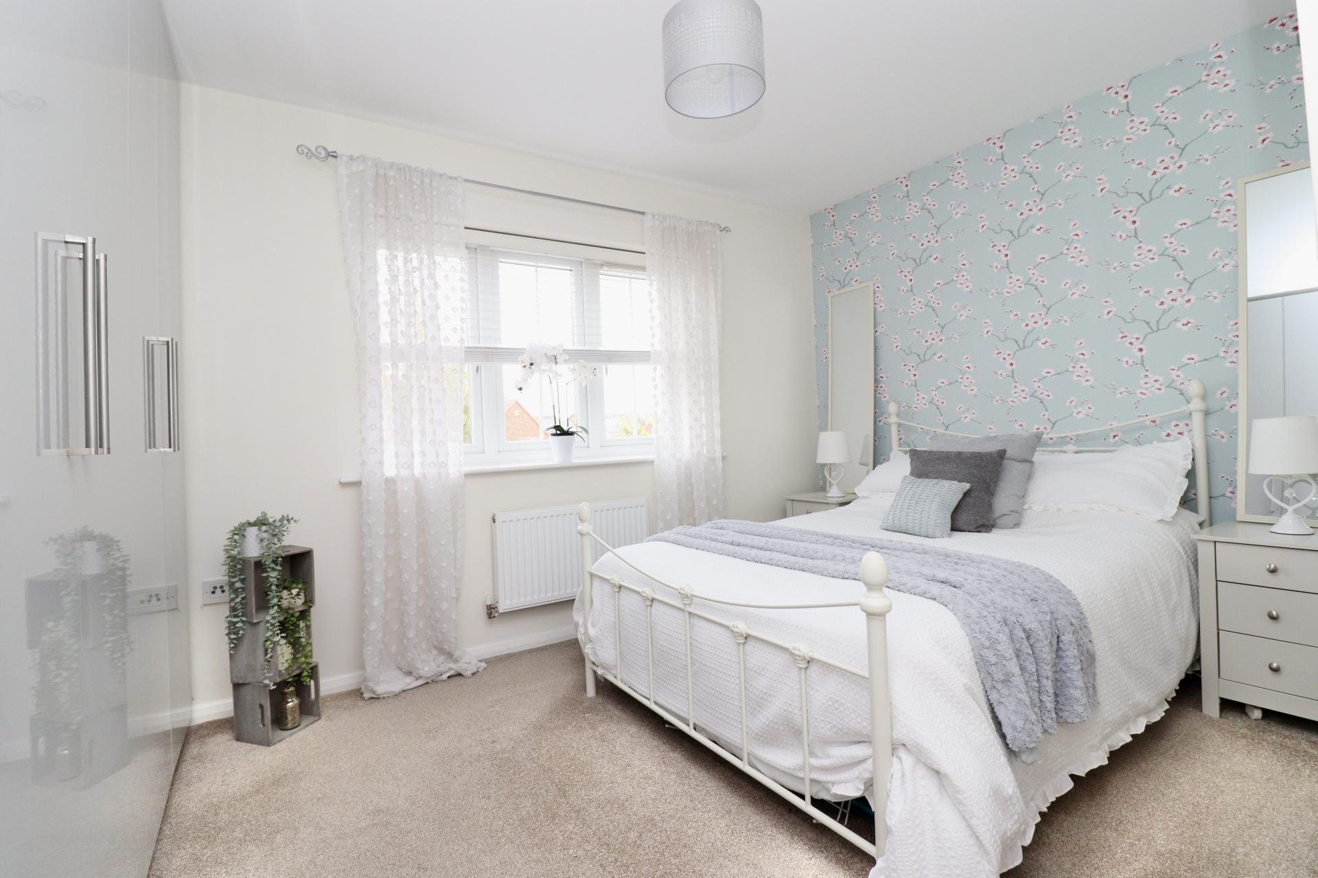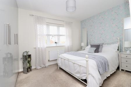 BEDROOM 1 12' 9" x 12' 0 (max)" (3.90m x 3.66m) With a range of fitted wardrobes, double glazed window to the front aspect and radiator.