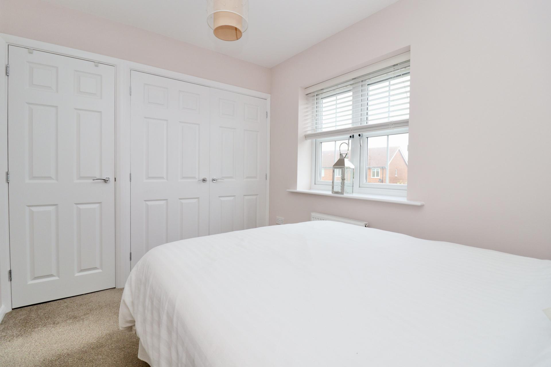 BEDROOM 2 12' 9" x 7' 10" (3.90m x 2.40m) With a range of fitted wardrobes, double glazed window to the rear aspect and radiator.
