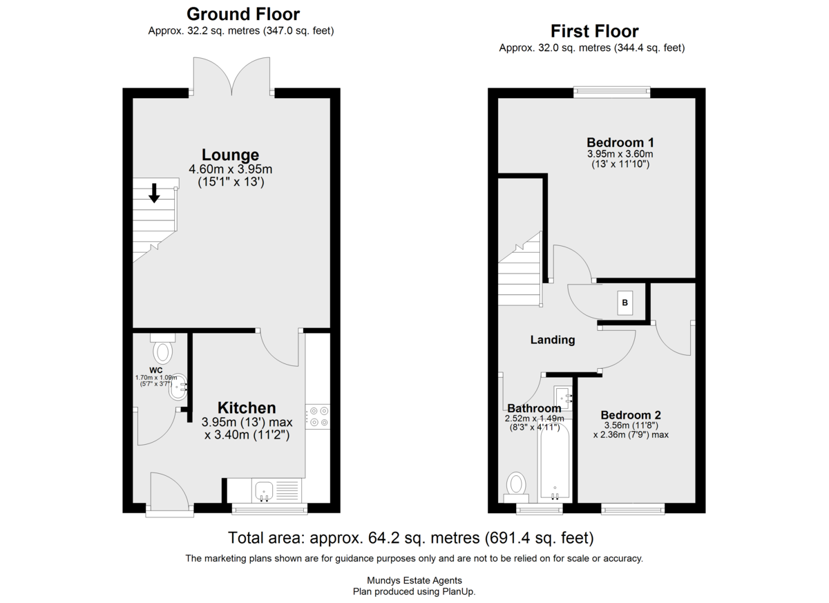 - Two double bedrooms and a first-floor bathroom