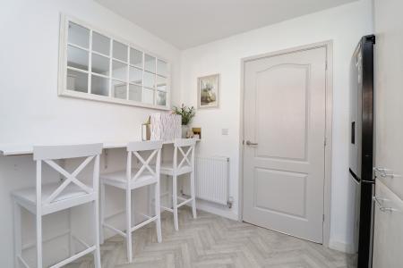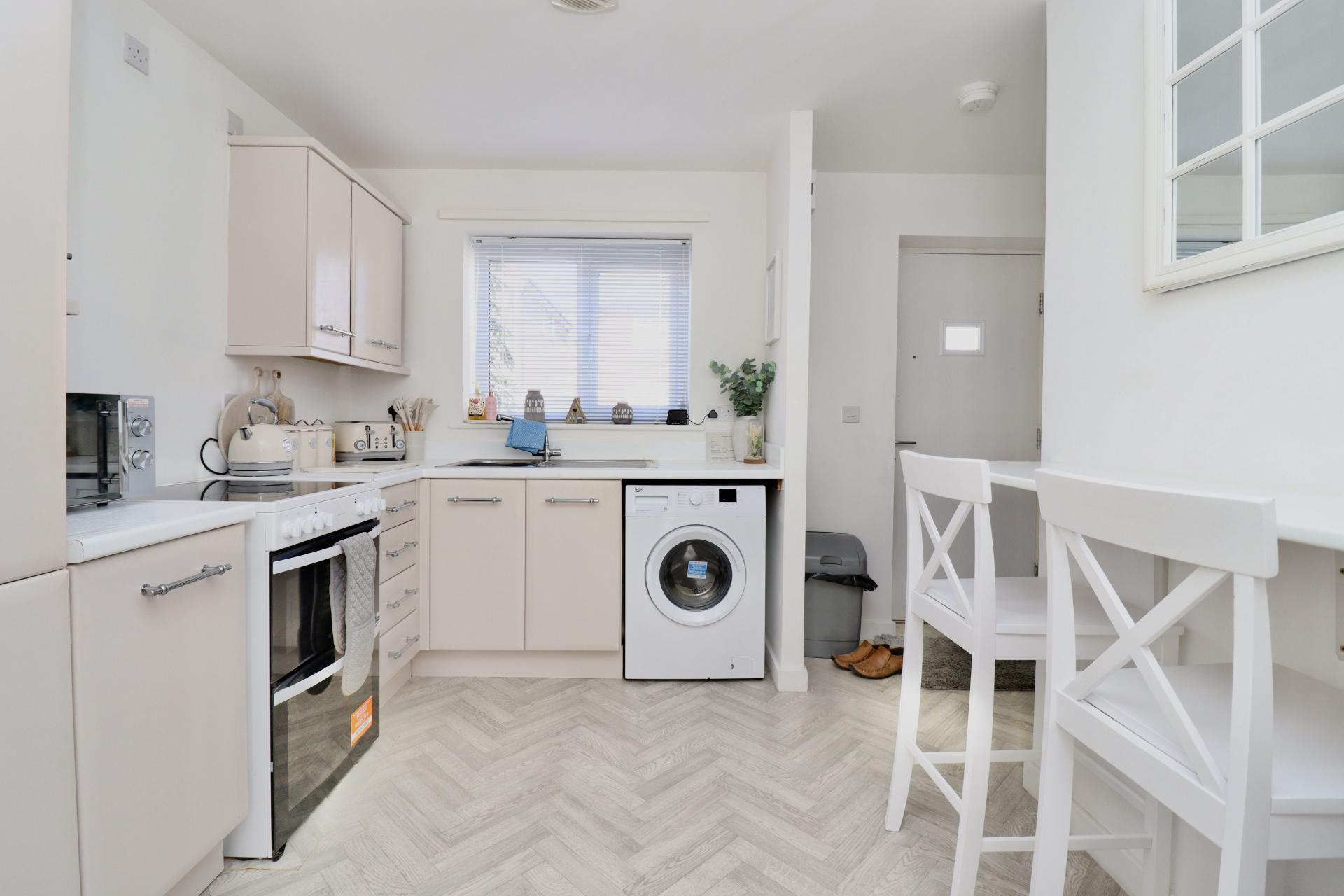 - Contemporary kitchen with breakfast bar and space for appliances