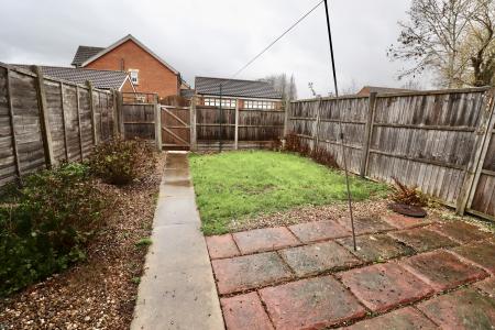 OUTSIDE To the front there is a small gravelled garden behind hedging, overlooking a green space. To the rear of the property there is an enclosed rear garden laid mainly to lawn with a patio seating area, gravelled area and mature shrubs. The property also benefits from a single garage to the rear with a block paved driveway providing off street parking.