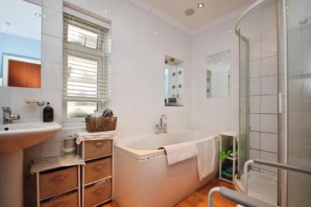 BATHROOM 9' 3" x 6' 10" (2.84m x 2.10m) Fitted with a four piece suite comprising of a panelled bath, shower cubicle, wash hand basin, close coupled WC, tiled splashbacks, towel radiator, spotlights and double glazed window to the rear aspect.