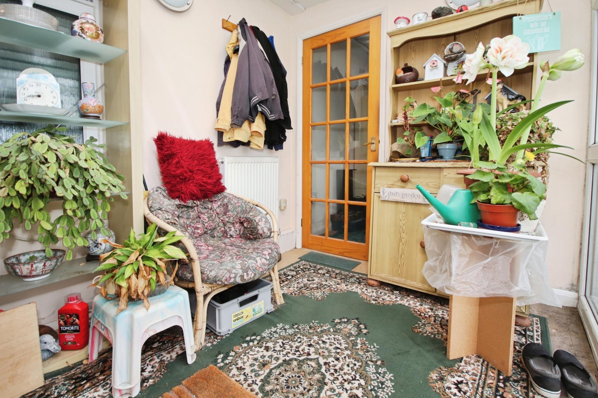 SUN ROOM 8' 4" x 6' 9" (2.56m x 2.07m) With double glazed window and door to the rear garden and radiator.