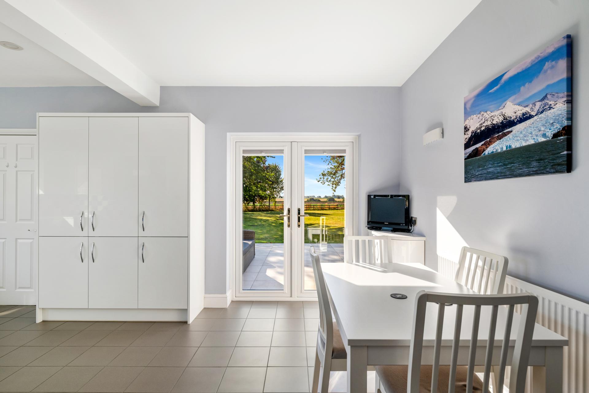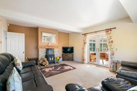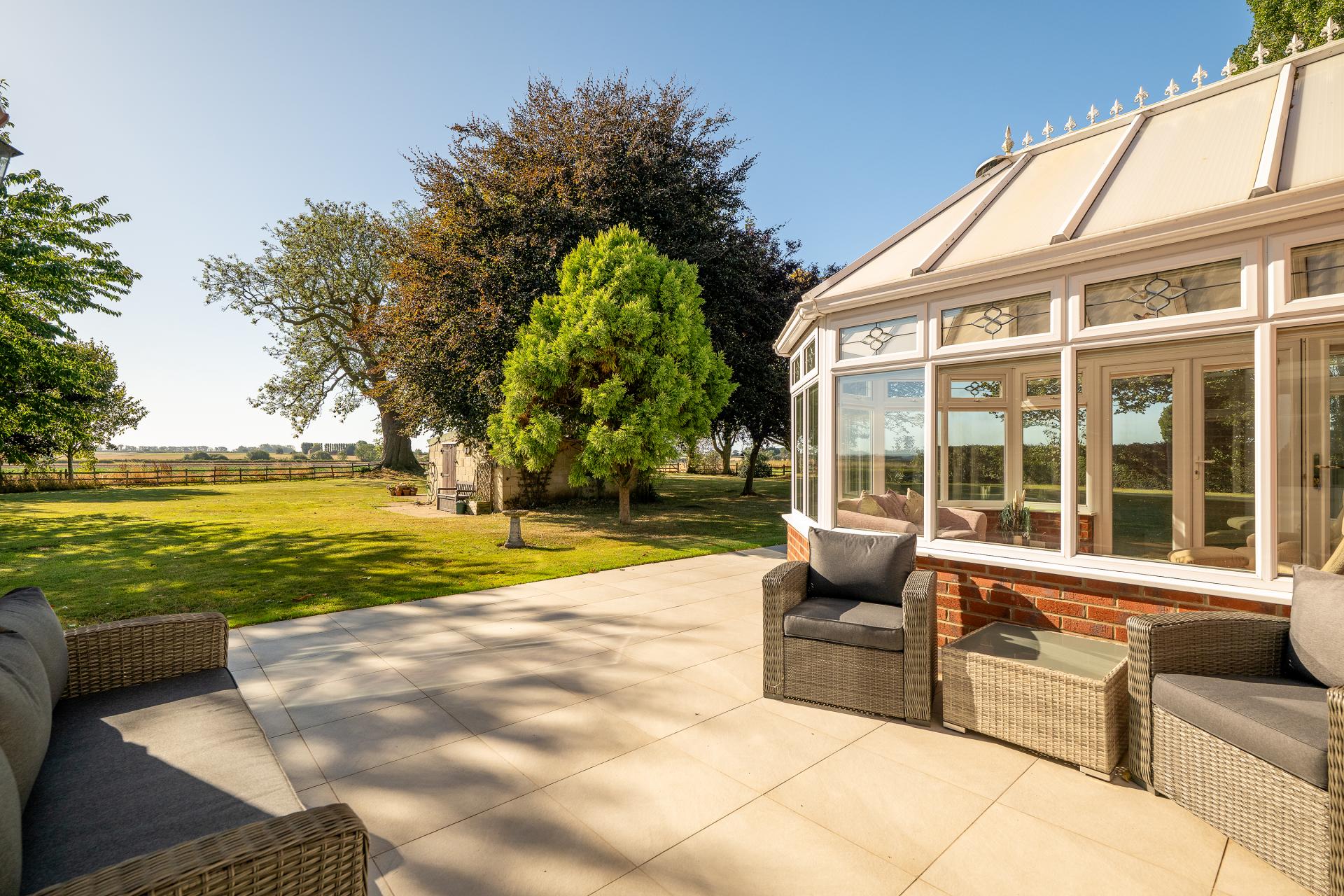 OUTSIDE The property is approached via an in-and-out gravel driveway providing ample off-road parking and access to a detached triple garage. The property is set within grounds of approximately 0.69 of an acre, surrounded by open fields. The gardens are mainly laid to lawn with mature shrubs and trees. To the rear there is a spacious patio area with an electric sun canopy offers the perfect space for outdoor entertaining.
