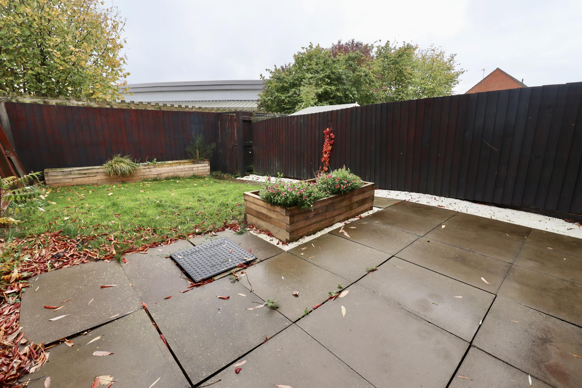 OUTSIDE To the front of the property there is a lawned garden. There is also an allocated parking space. To the rear there is an enclosed garden laid mainly to lawn with patio seating area and raised flowerbeds.