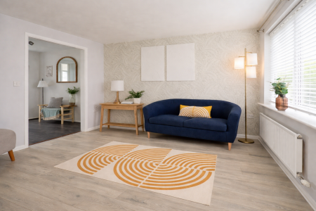 LOUNGE 11' 11" x 10' 8" (3.65m x 3.26m) With double glazed window to the front aspect, under stairs storage cupboard, laminate flooring and radiator.