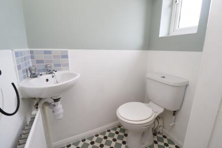 CLOAKROOM/WC With close coupled WC, wall mounted wash hand basin, tiled splashbacks, radiator and double glazed window to the front aspect.