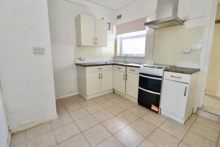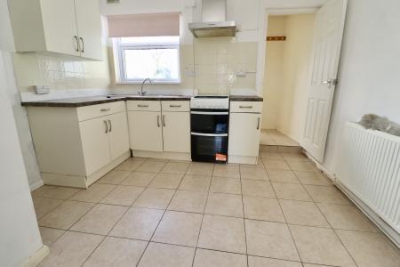 KITCHEN 12' 5" x 10' 7" (3.81m x 3.25m) Fitted with a range of wall and base units with work surfaces over, stainless steel sink with side drainer and mixer tap over, space for cooker, tiled flooring and splashbacks, radiator, staircase to the first floor, under stairs storage cupboard and double glazed window to the rear aspect.