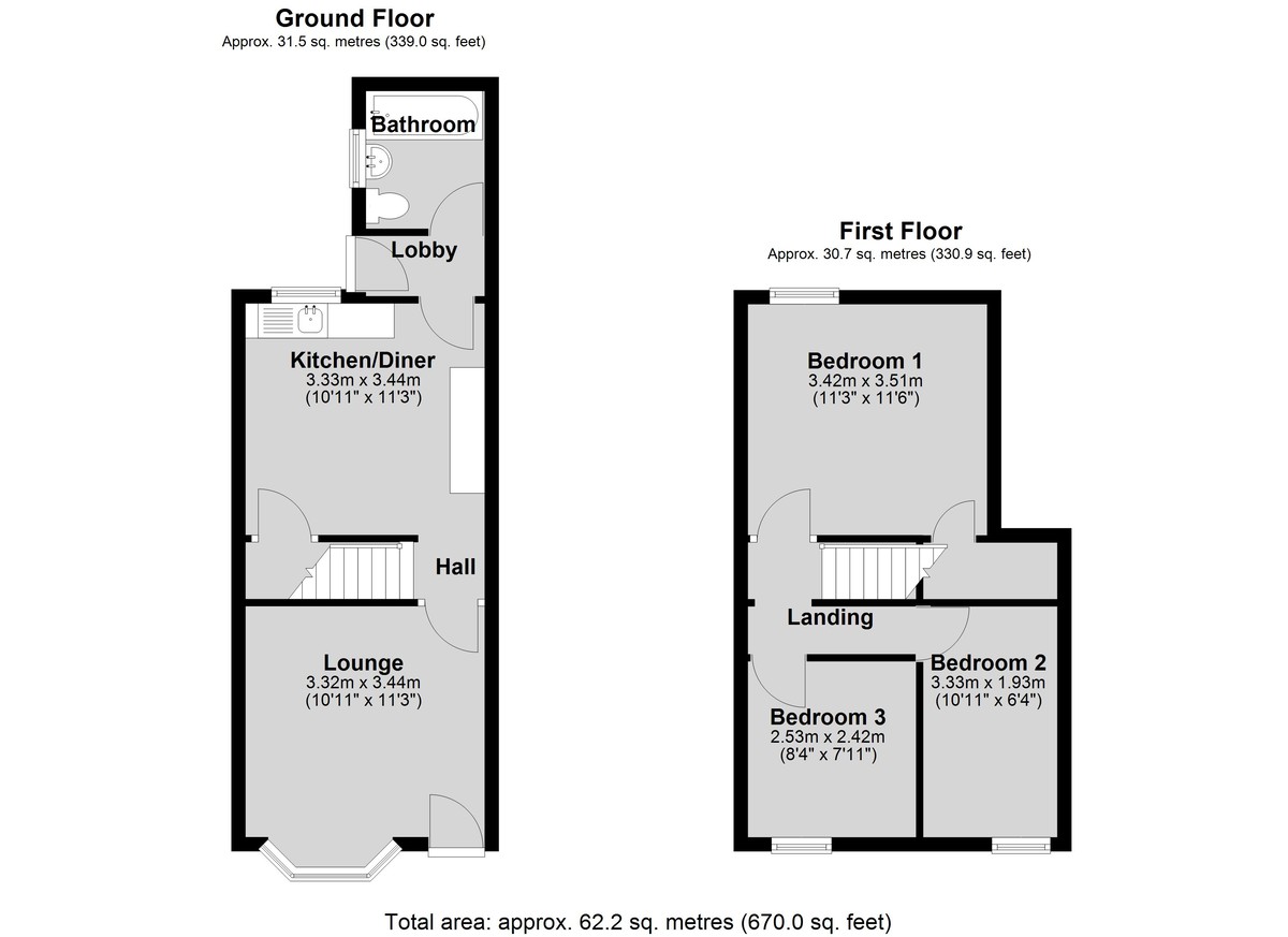 LOUNGE 11' 3" x 10' 10" (3.44m x 3.32m) With double glazed bay window to the front aspect and radiator.